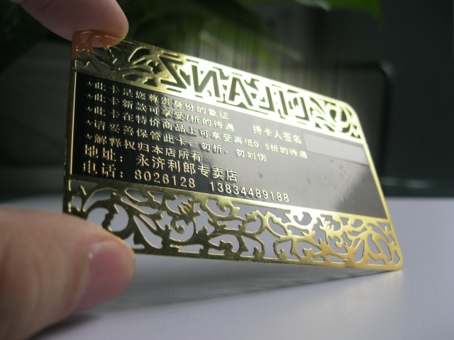Información de producto de tarjeta de visita del metal con diseño troquelado